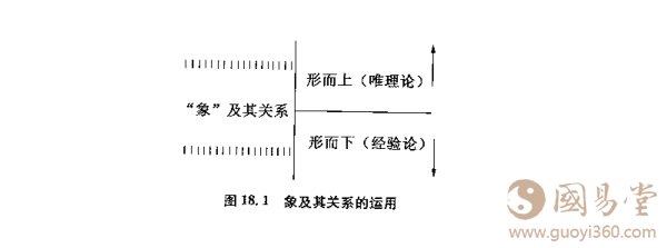 图中显示了,八字命理学知识系统的核心一象及其关系的运用,既有形而下方.面,也有形而上方面,或者说,是形而上和形而下兼而有之。从本质上讲,它是经验主义的。因为象本身是从经验中“引申”出来的,而且,始终保持着经验的形式。然而,象的推理,以及在象的基础上产生的关系层次,并进而在关系层次上进行的推理,都已经突破了形而下的疆界,突破了感性认识的疆界,进入了形而上的领域,即抽象的理性推理的领域。